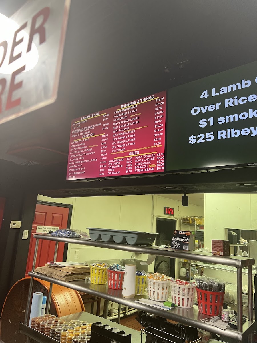 Lamb chops, grill Broccoli, Grilled Shrimp, over rice